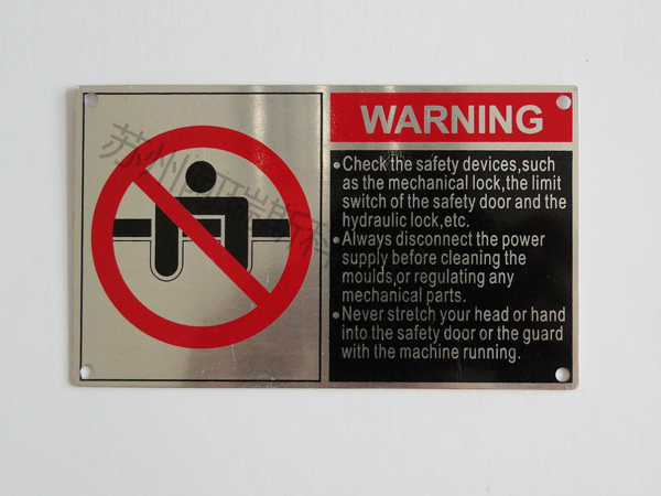 平面標牌是由絲印、腐蝕、氧化、衝壓製作而成。標牌上的文字、記號具有象徵性、暗示性等功能。使用範圍廣,製作成本低等特性。