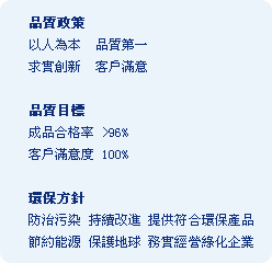 建立ISO9001質量管理體系,推動持續改善流程,以滿足顧客需求及顧客滿意為目標,全面提升產品及服務品質。